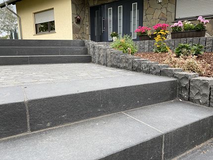 Basalt schwarz Blockstufen geflammt