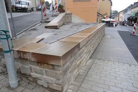 Oberfläche bruchrauh, Kanten rundum bossiert |