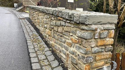 Oberfläche natur, Längskanten bossiert, Stoßfugen gesägt