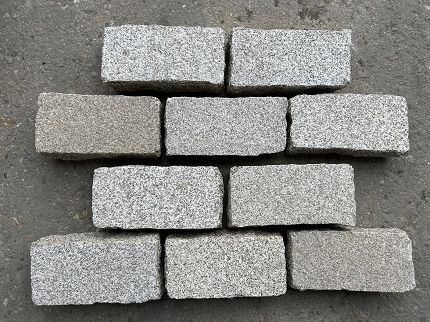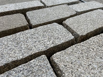 - Granit Grau-Gelb, allseitig grob gespaltener Pflasterstein, Format: 12-16 x 20-25 x 7-10 cm